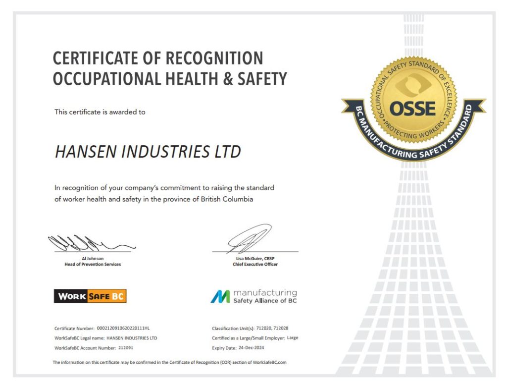 Occupational Safety Standard of Excellence (OSSE) Company, Uncategorized / By Hansen Occupational Safety Standard of Excellence (OSSE) Read More »
